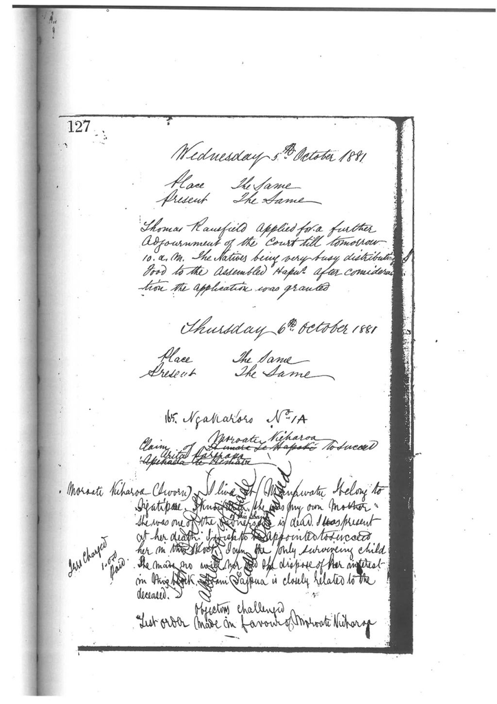 Otaki Maori Land Court Minutebook - 6 October 1881.