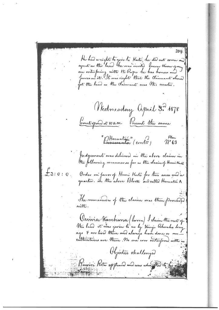 done Otaki Maori Landcourt Minutebook - 3 April 1878 204 - 208