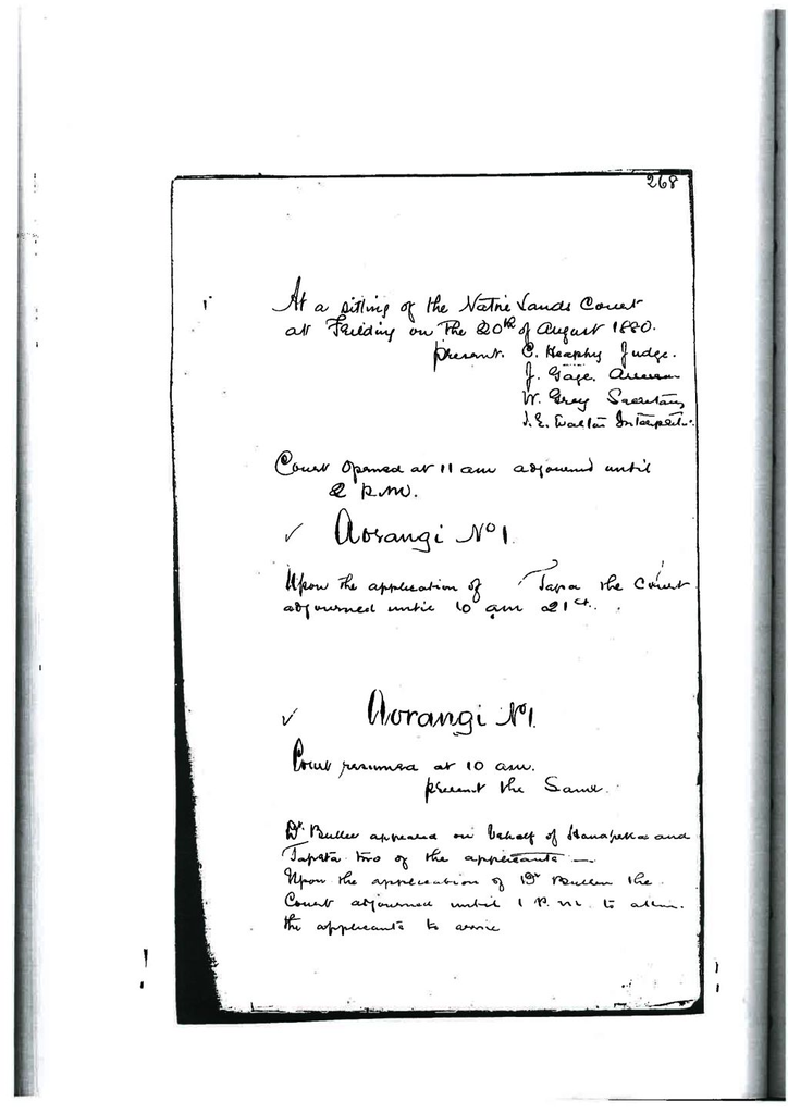 Otaki Maori Land Court Minutebook - 20 August 1880.