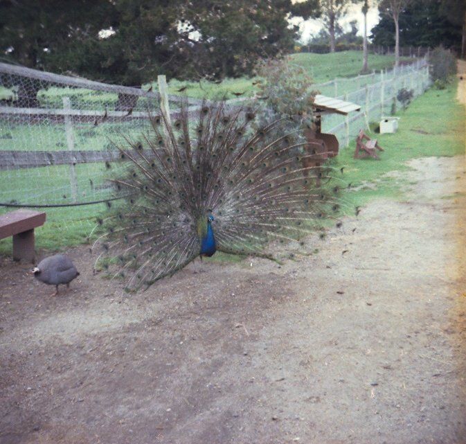 Peacock with tail displayed.