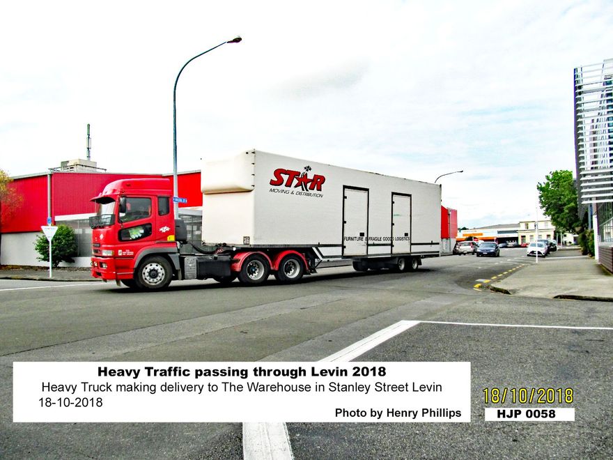 Heavy Truck making delivery to The Warehouse in Stanley Street Levin 18-10-2018