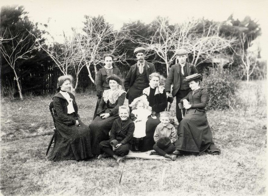 Information on seperate paper states: ... group of ten unidentified people, possibly a working class family as the men are wearing cloth caps.