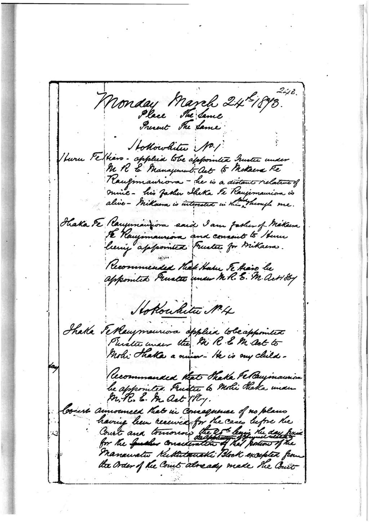 Recommended that Ihaka Te Rangimauriora be appointed Trustee to Mohi Ihaka under M.R.L.M. Act 1867
