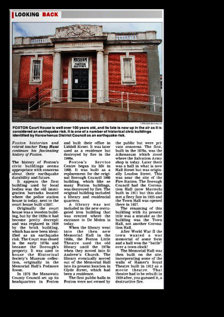 The history of Foxton's civic buildings seems appropriate with concerns about their earthquake durability and future.