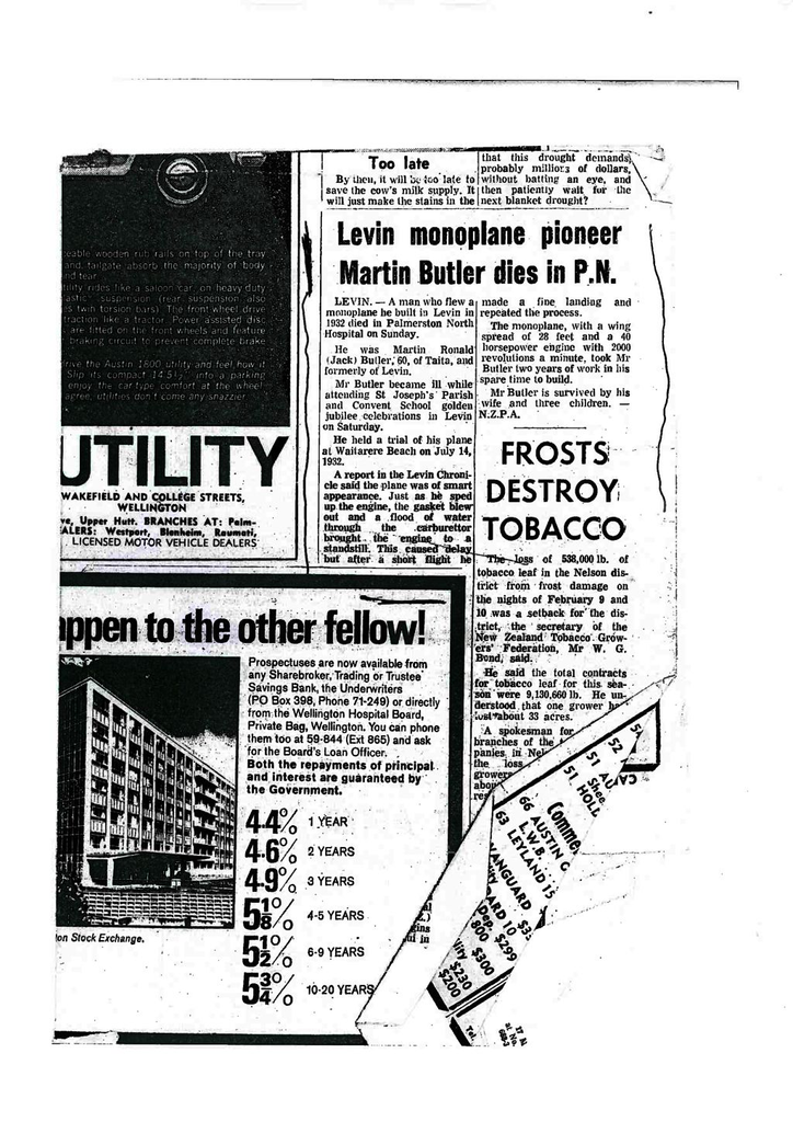 Levin monoplane pioneer Martin Butler dies in P.N.