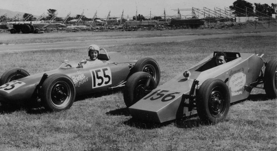 The two Formula Vees of Sergeant Major David Hayward (left) and Sergeant David Carswell at the Levin motor-racing circuit, 18 November 1969.