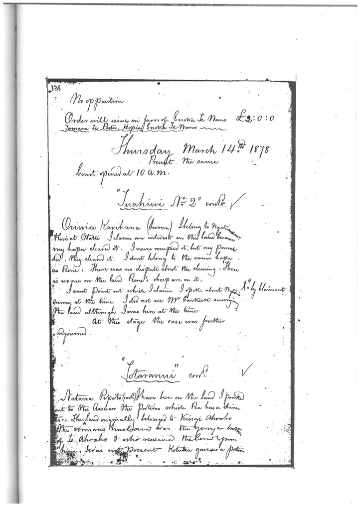done Otaki Maori Landcourt Minutebook - 14 March 1878.