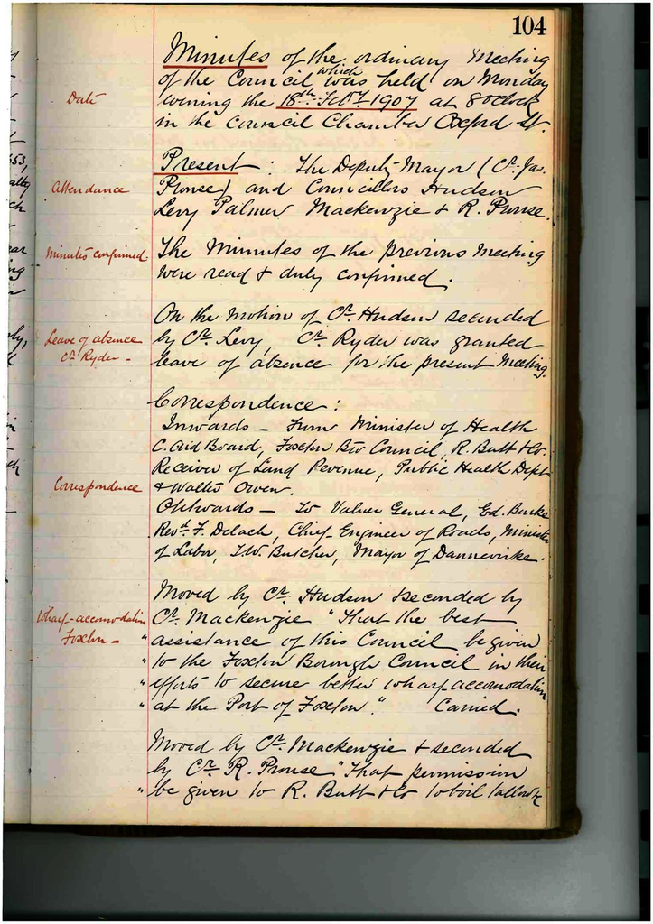 Moved by Cr Hudson and seconded by Cr Mackenzie “That the best assistance of this Council be given to the Foxton Borough Council in their efforts to secure better wharf accommodation at the Port of Foxton.” Carried.