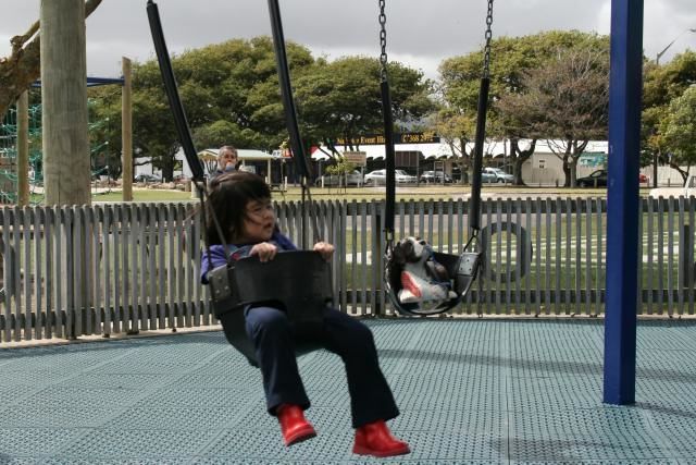 We went to the Adventure Playground and I played on the swings with a nice friendly Human Puppy. She didn't bite.
