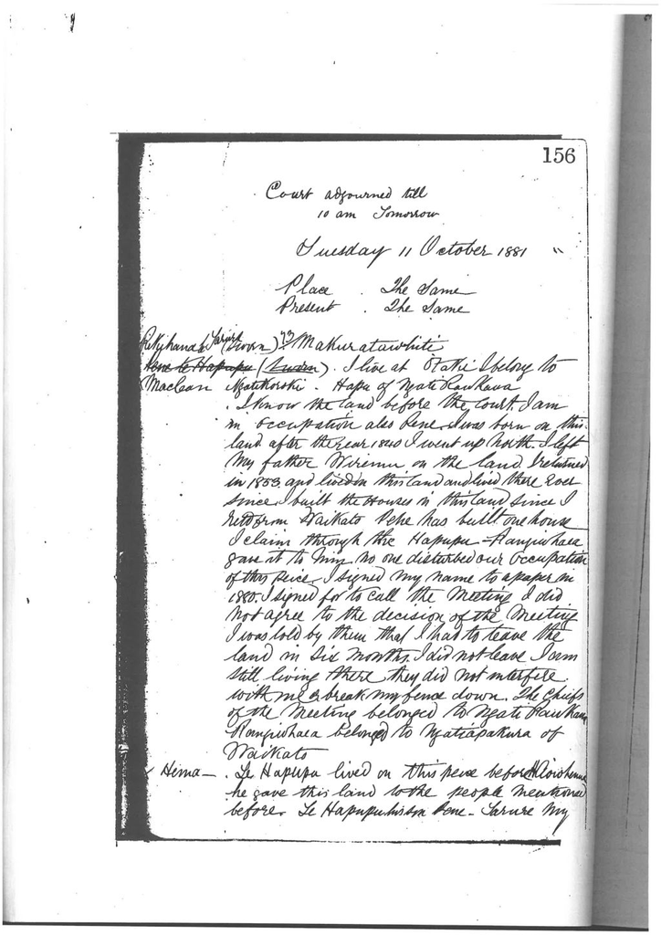 Otaki Maori Land Court Minutebook - 11 October 1881.