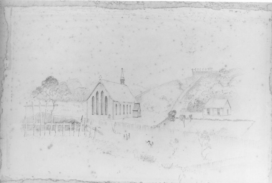 A scetch of Rangiatea Church, Otaki possibly by Octavius Hadfield.