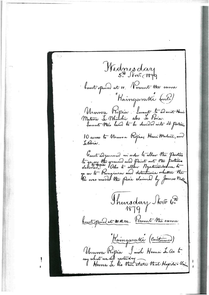 Otaki Maori Land Court Minutebook - 6 November 1879.