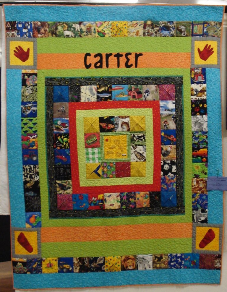 Made for Grandson carter - note the corners have pictures hidden under the fabric. Quilt by Helen Cole.