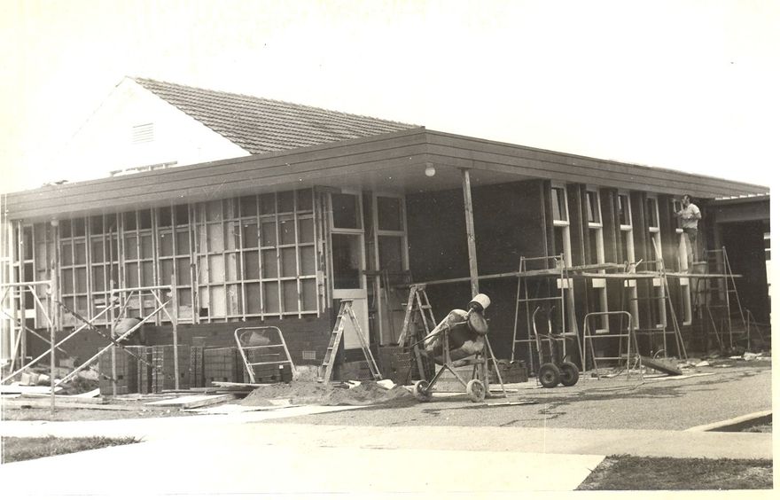 Construction, new Baptist Church, nearing completion, 1972 1 B&W photo print