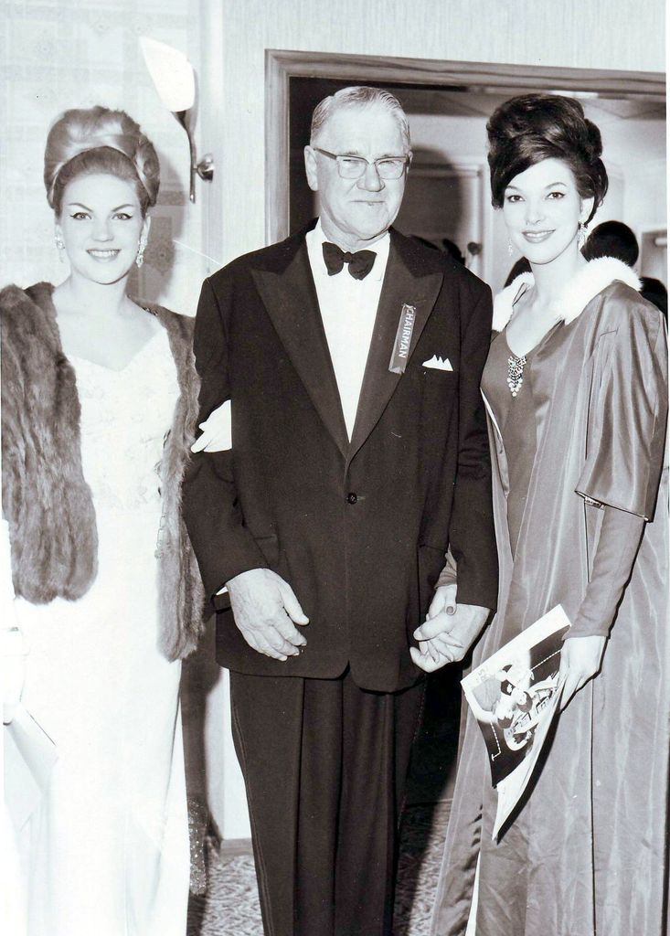 Part of the Official opening of the Exhibition ? Chairman, Mr R.R. Lind with 2 women (Miss Horowhenua/Miss New Zealand ?).