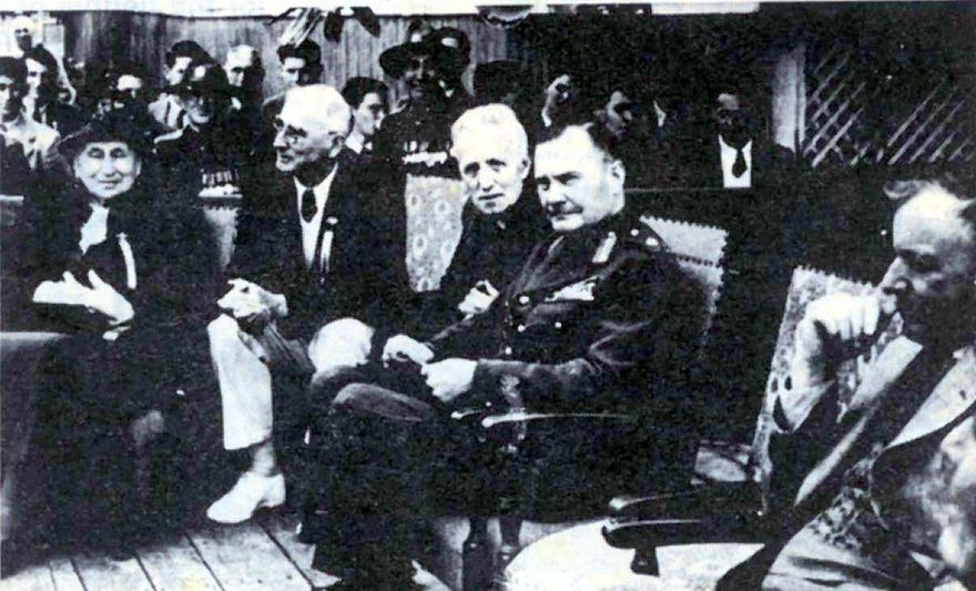 Pictured are members of the official party on that occasion: From left: Mrs Maud Annie Lett, mother of Bill and Elsdon Clark, who gave the land to the club; the then Mayor of Levin, Mr H.B. Burdekin; Mr Walter Lett; Lord Freyberg; and the then chairman of the Horowhenua County Council, Mr A.M. Colquhoun.