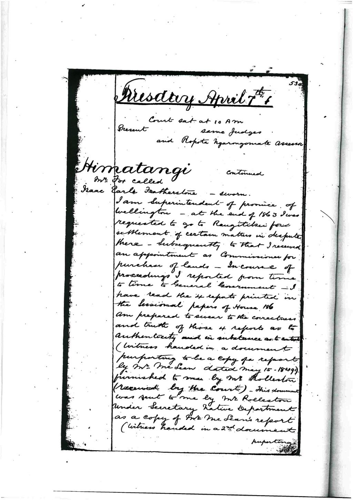 When Dr. Featherstone came to me, he did not tell me that he had come to tell us that Ngatiraukawa had consented to arbitration. Dr. Featherstone asked me what was on our thought. I said, “Go back to Wellington and ask about the money, £50, which Mawae and Tamati Puna got.