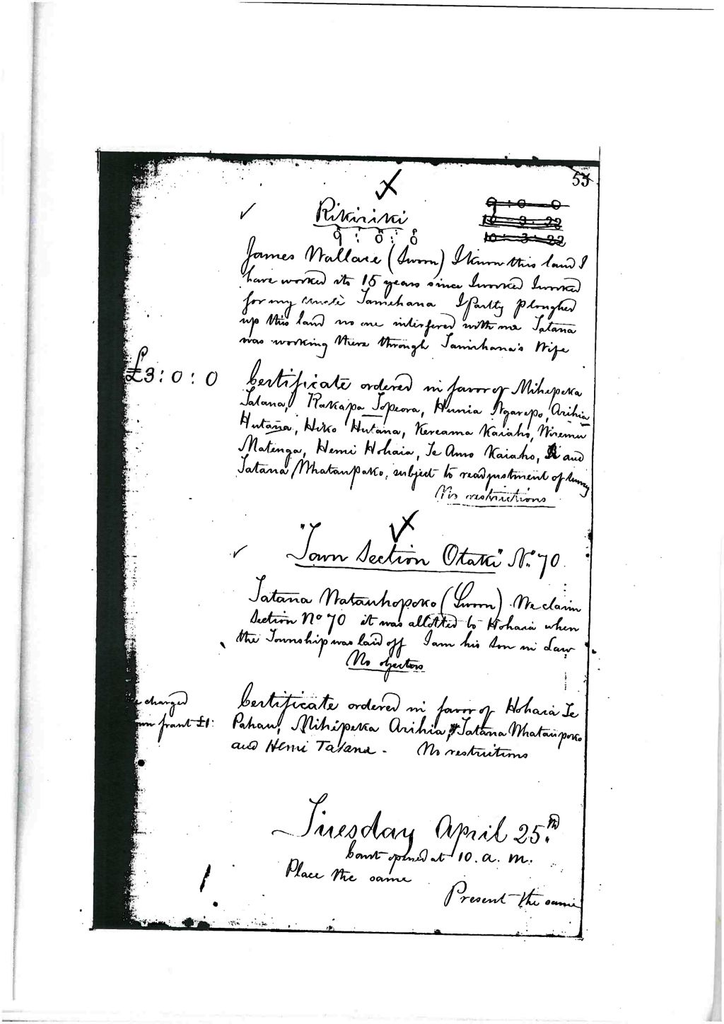 Otaki Maori Landcourt Minutebook - 25 April 1876