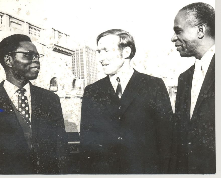 Penciled on back - An Auckland man, Mr Desmond Hill (centre) is expected to visit Levin early in the New Year to give his impressions on the international Christian Science conference at Boston. Thurs. Dec. 3, 1970.