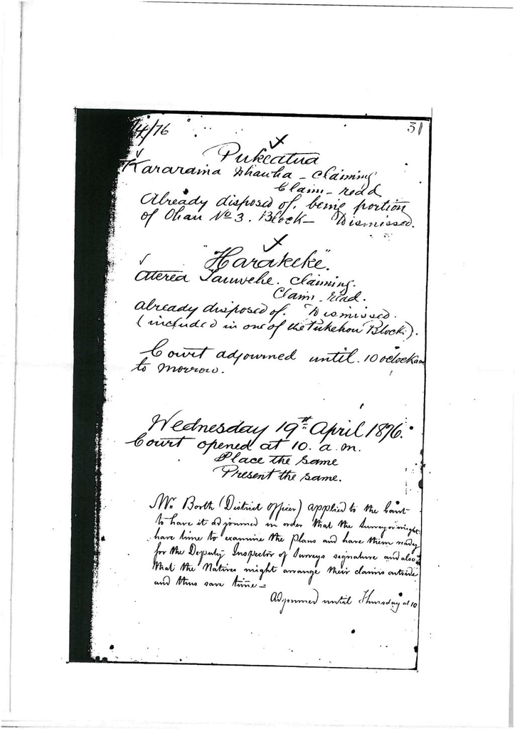 Otaki Maori Landcourt Minutebook - 19 April 1876