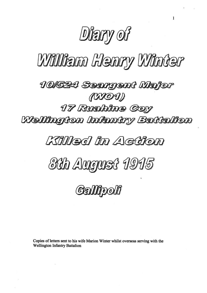 Diary of William Henry Winter10/524 Sergeant Major (W01)