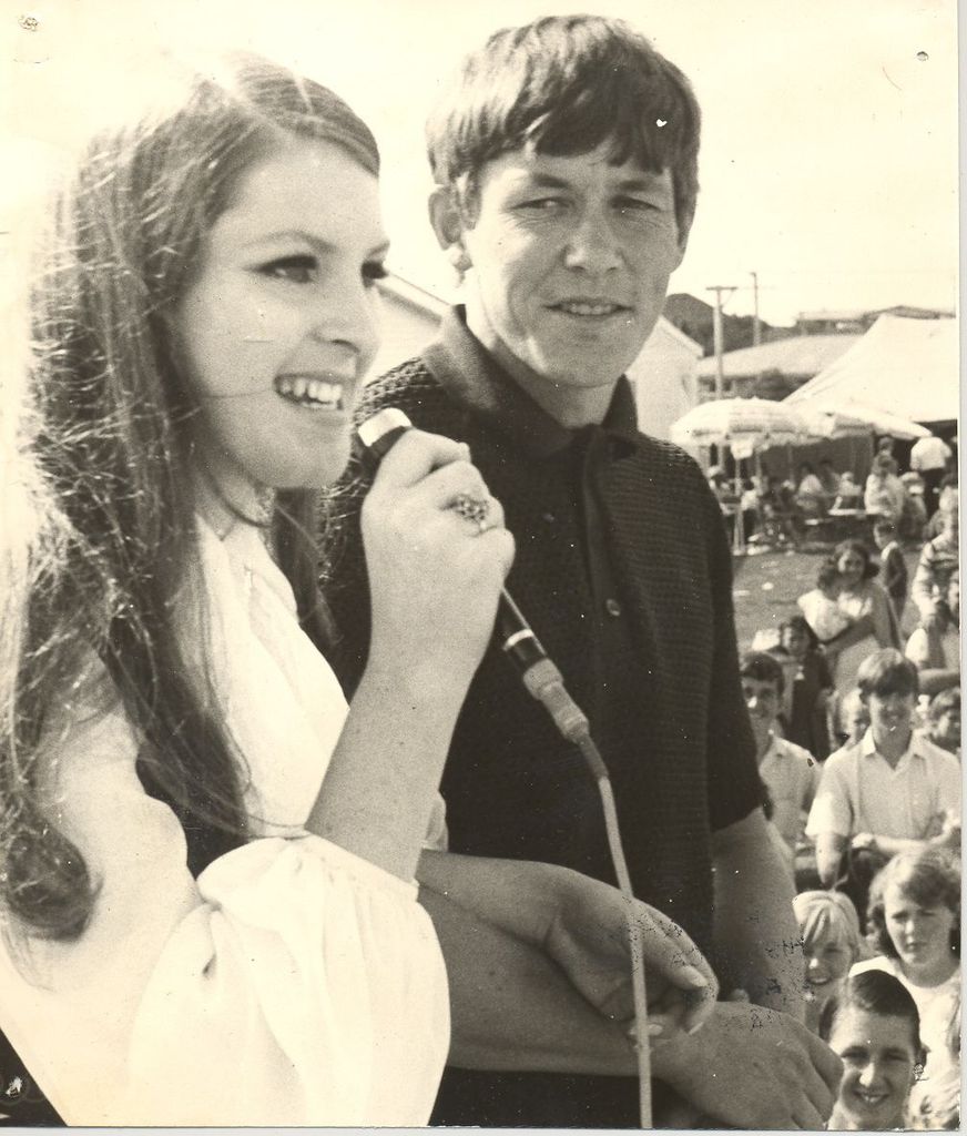 Allison Durbin (left), Golden Disc Award winner for 1968, providing free entertainment at Levin North School fiesta. Standing beside her (right) is Brian Blenkhorn of Levin. 1 B&W photo print