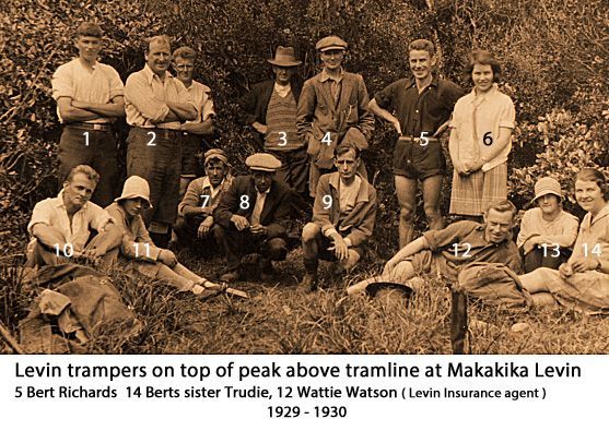 Levin trampers on top of peak above tramline at Makakika Levin 1929-1930 jpg