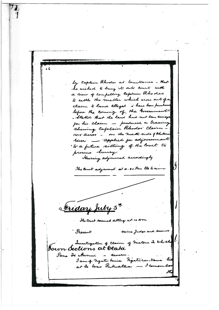 Wiremu Paiaka – called – did not appear. Further hearing of Wiremu Paiakas claim to Wai ariki postponed in consequence of his absence.