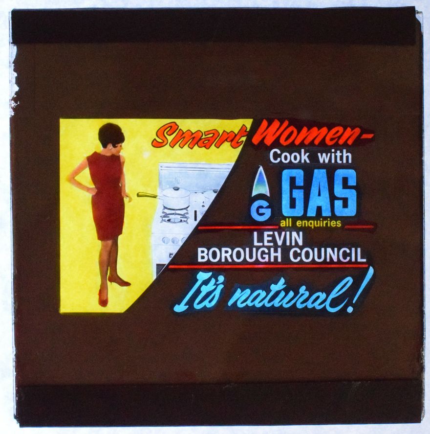 The passage of time changes how we view images from the past. At the time (probably the 1960s) the Levin Borough Council was encouraging residents to use their gas services. Councils managed the majority of New Zealand's gas supply until the 1989 local government reforms, with many managing electricity too.