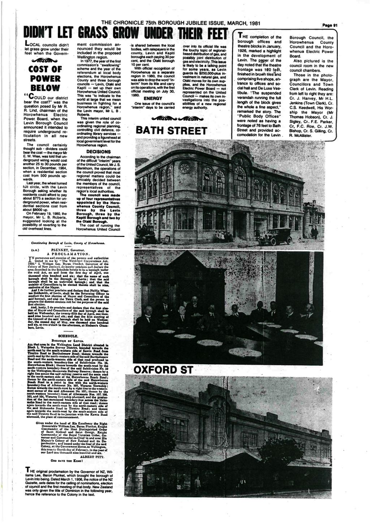 The completion of the Borough offices and theatre blocks in January 1926, marked a highlight in the development of Levin.
