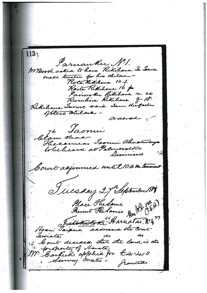 Otaki Maori Land Court Minutebook - 27 September 1881.