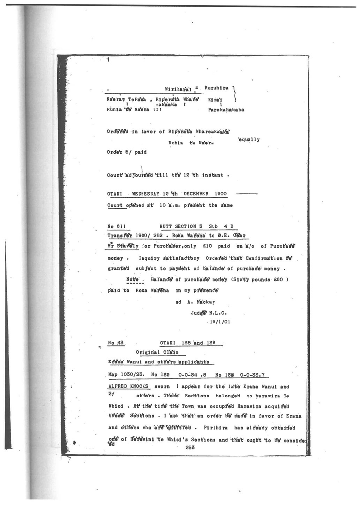 Otaki Maori Land Court Minutebook - 12 December 1900.
