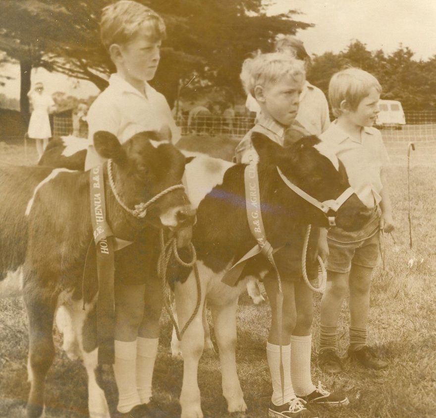Penciled on back - Winners of the junior ring craft section of the Poroutawhao School calves and lambs day. from left, Laurence Spicer 1, John Turnbull 2, Craig Burnell, 3. Sat. Nov. 11, 1972.
