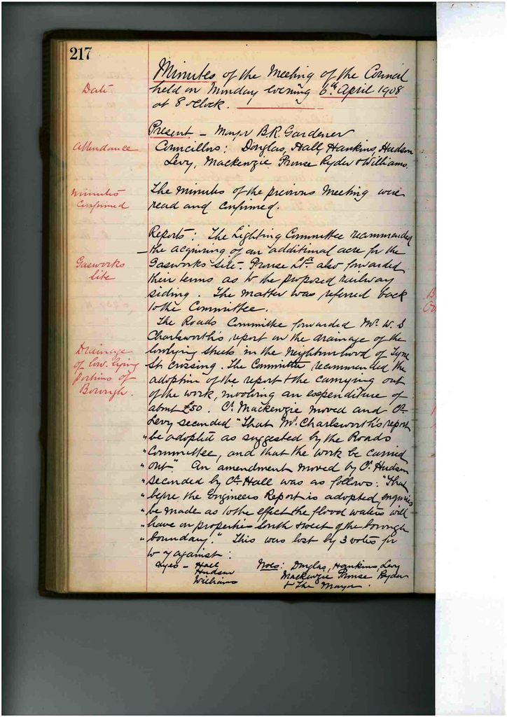 Cr MacKenzie’s motion was then put and declared carried by the same vote seven to three, Crs. Hall, Hudson and Williams voting in the negative.