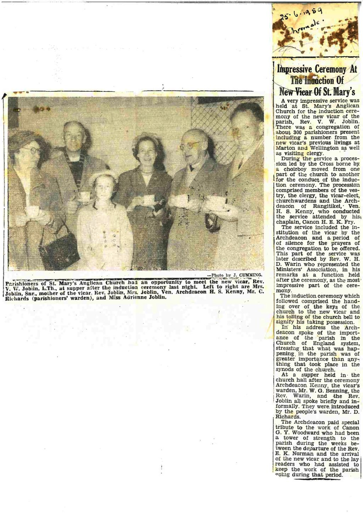 Impressive Ceremony at the Induction of New Vicar of St Mary's, Levin 1959