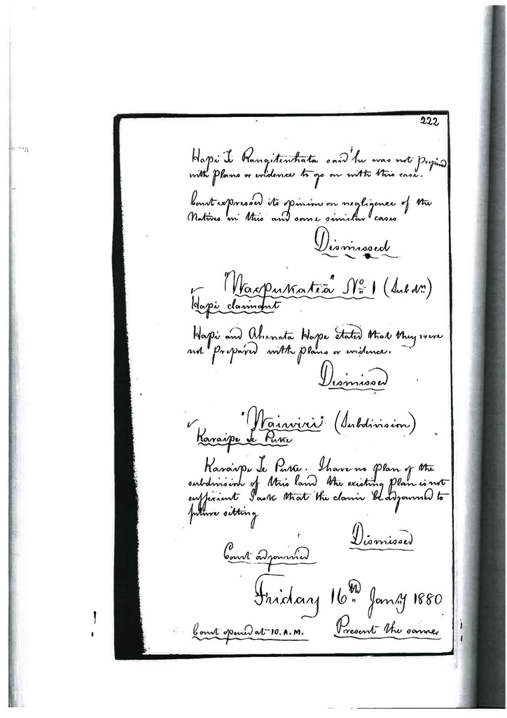 Otaki Maori Land Court Minutebook - 16 January 1880.