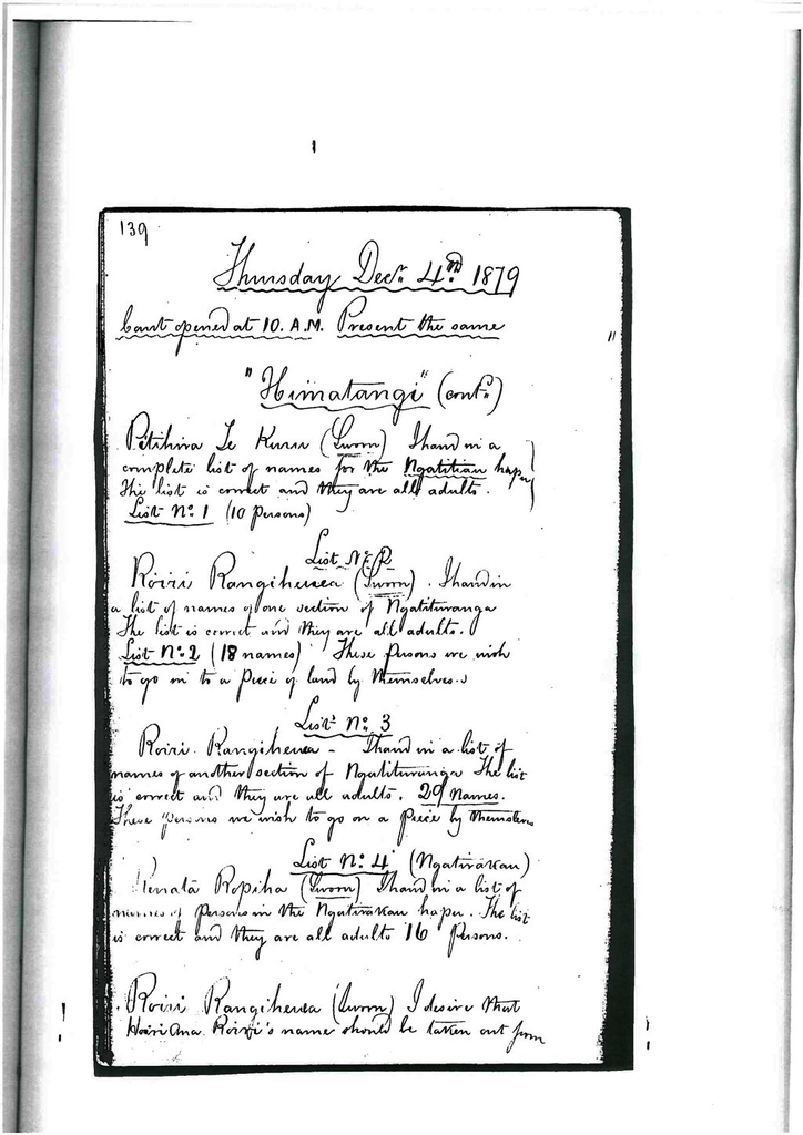 Otaki Maori Land Court Minutebook - 4 December 1879.