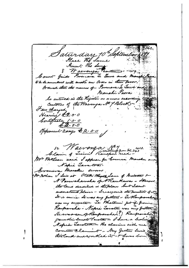 Otaki Maori Land Court Minutebook - 10 September 1881.