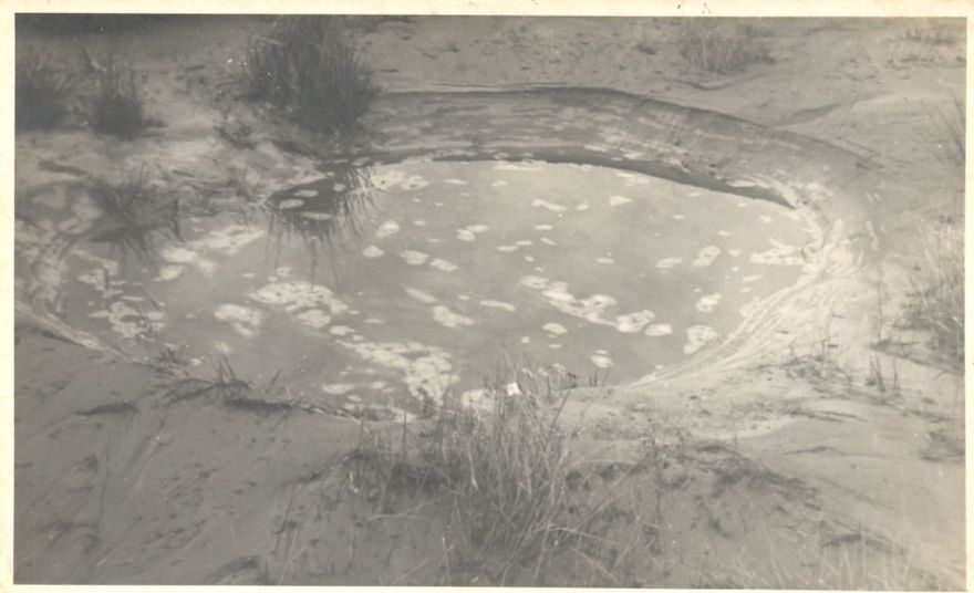 Sinkhole at “tap paddock’ as result of earthquake at Foxton Beach 1942