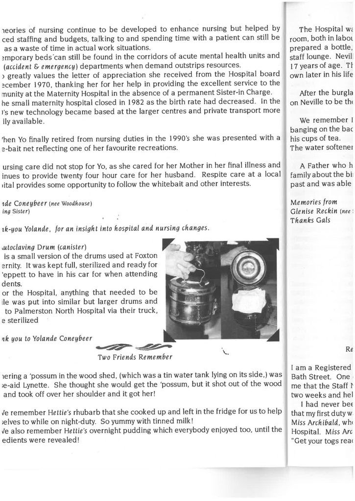 For the Hospital, anything that needed to be sterile was put into similar but larger drums and sent to Palmerston North Hospital via their truck, to be sterilized.