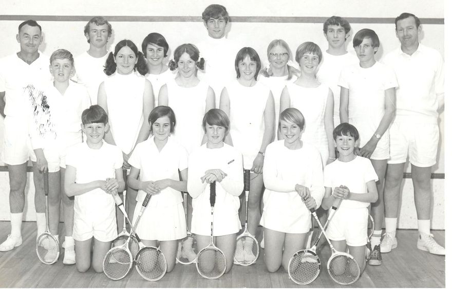 Penciled on back - Junior Members of the Levin Squash Club, seen with their coaches. from left, back row, Mr Carle, Chris Holder, Belinda Tomlinson, Guy Stedman, Vivienne Benning, Bruce Eccles, Mr Todd. middle row: Chris Stoddart, Lorraine Easton, Wendy Bryce, Sheryl Dixon, Philippa Simpson, Kim Lidstone. front row, Stephen Rawson, Vena Goldthorpe, Kate Morse, Elizabeth Morse, Wayne Langford. Tues. Sept. 23, 1969.