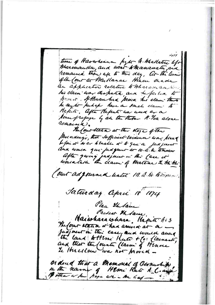 Otaki Maori Land Court Minutebook - 18 April 1874