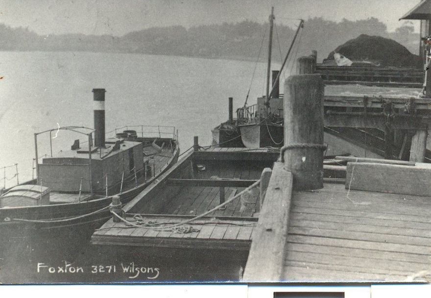 dis 7.00/ Port of Foxton with steamer and punt alongside wharf/”Wilson 327 Foxton”/