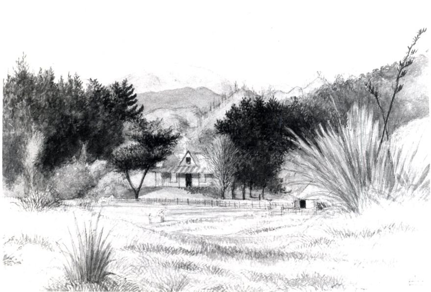 ‘Netley’, home of A.J. Hadfield (sketch). Located near Rangiatea Church in Otaki