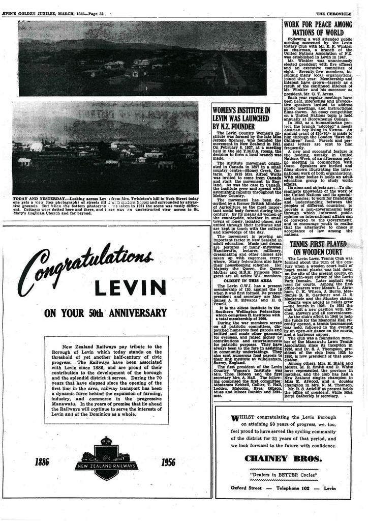 The Levin Women's Institute was formed by the late Miss Jerome Spencer, who founded the movement in New Zealand in 1912. On February 8, 1927, at a meeting held in the old Y.M.C.A. rooms, the decision to form a local branch was made.