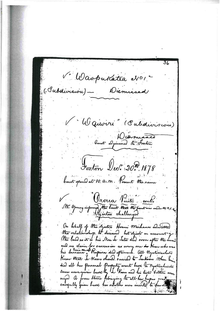 Otaki Maori Land Court Minutebook - 20 December 1878.