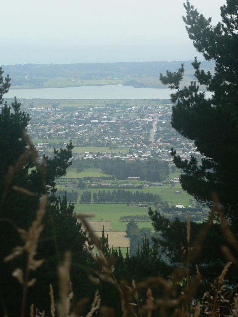 a view that only you see if you climb up to the trig via Gladstone rd .the two colleges in the distance Horowhenua College and close to the hills Waiopehu College and my street backing on the play field Hadfield street and between both colleges is Bath street this pic shows the distance between the hills and the lake and Levin tucked up all nice and snug between the two