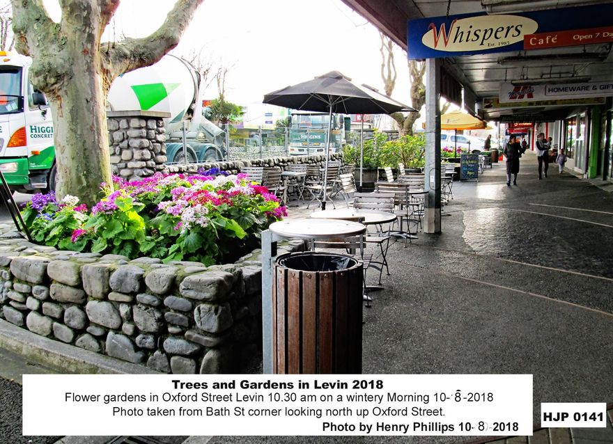 HJP 0141 Flower gardens in Oxford Street Levin 10.30 am on a wintery Morning 10-10-2018