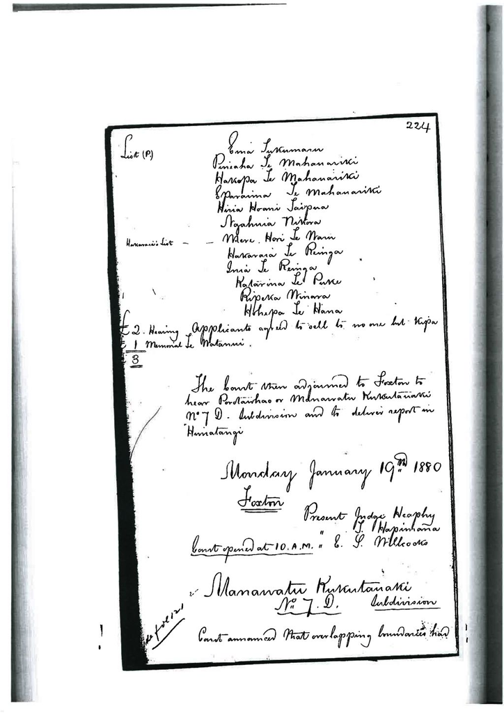 Otaki Maori Land Court Minutebook - 19 January 1880.