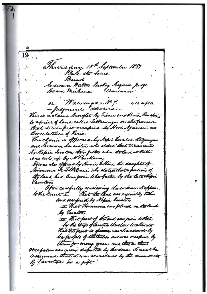 Otaki Maori Land Court Minutebook - 15 September 1881.
